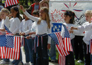 | The annual Conejo Valley Days kids parade was held on Saturday, April 27th at the Civic Arts Plaza in Thousand Oaks. The girls from Brownie Troop 931 from Westlake Village, seen here in the photo, were just one of many patriotic groups which performed in the parade. Congratulations to all the children who participated in the event. |